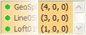 С левой стороны у каждой активной строки есть кружочек, отображающий текущее состояние модели в предпросмотре.